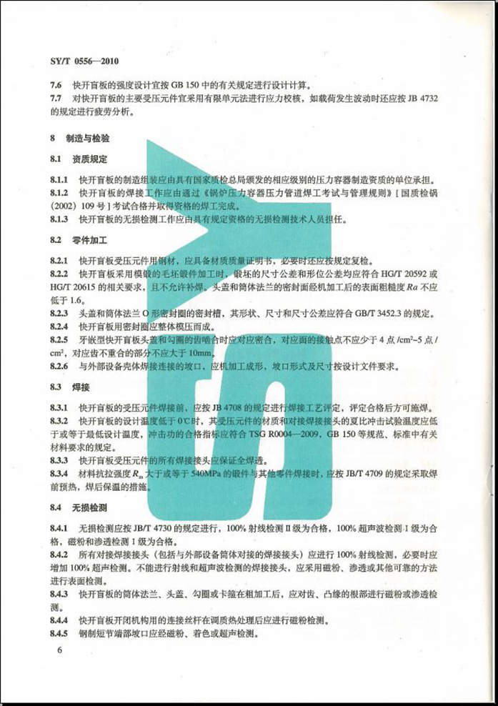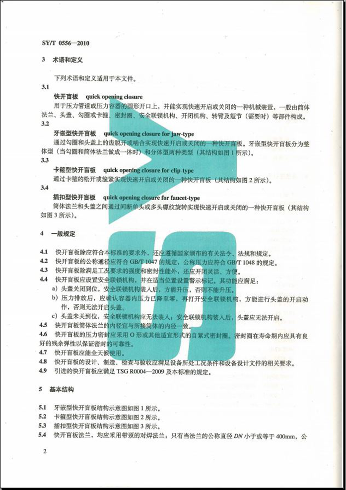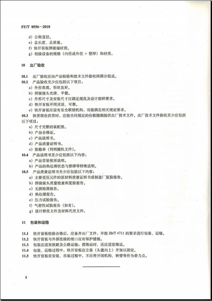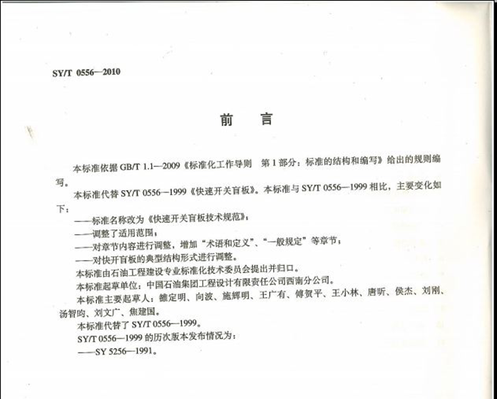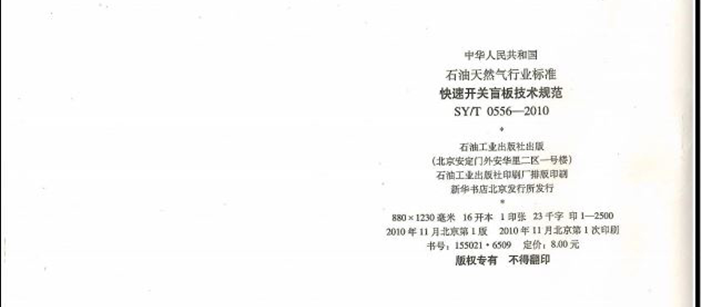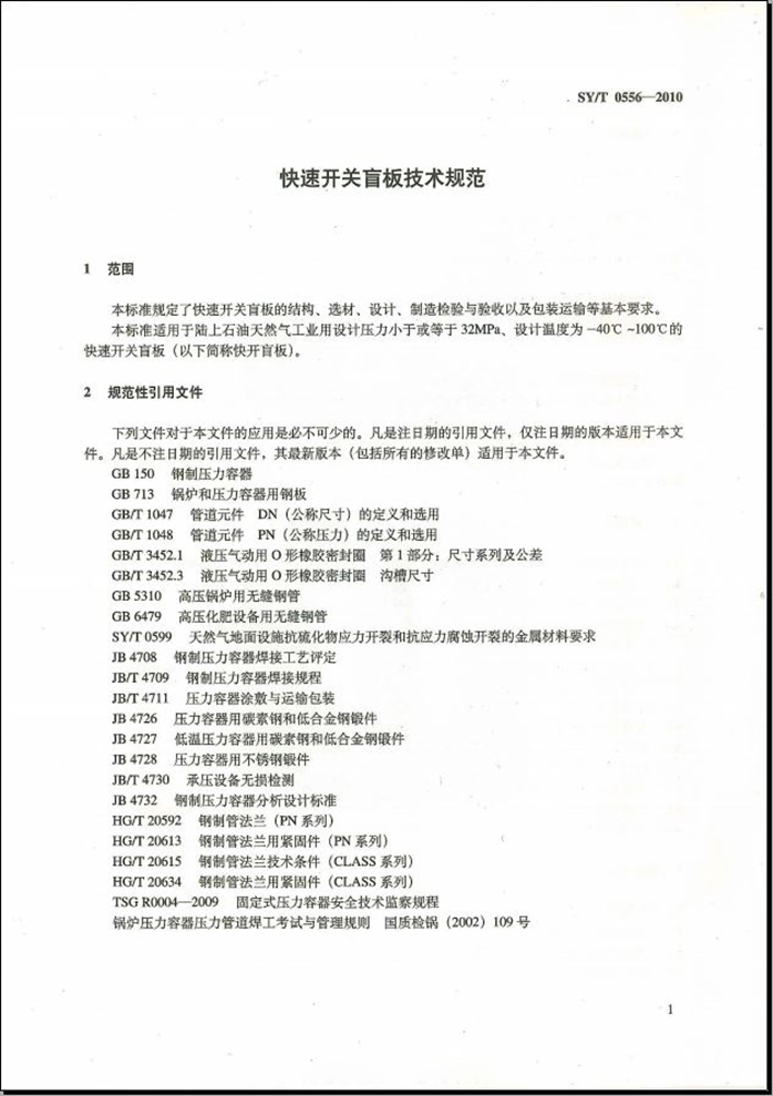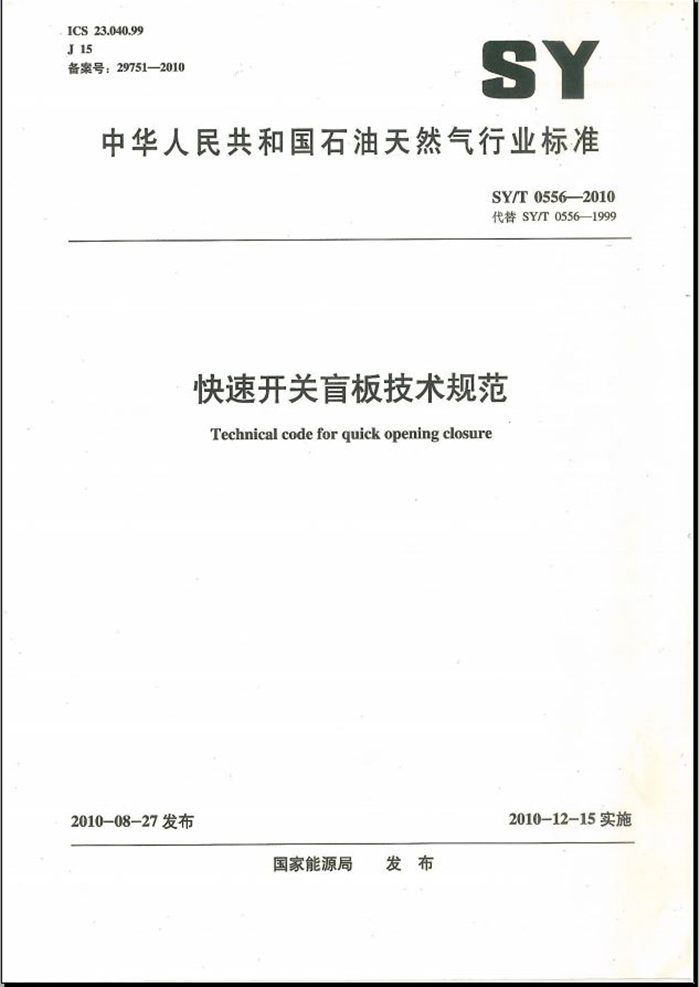 SYT 0556-2010 快速开关盲板技术规范