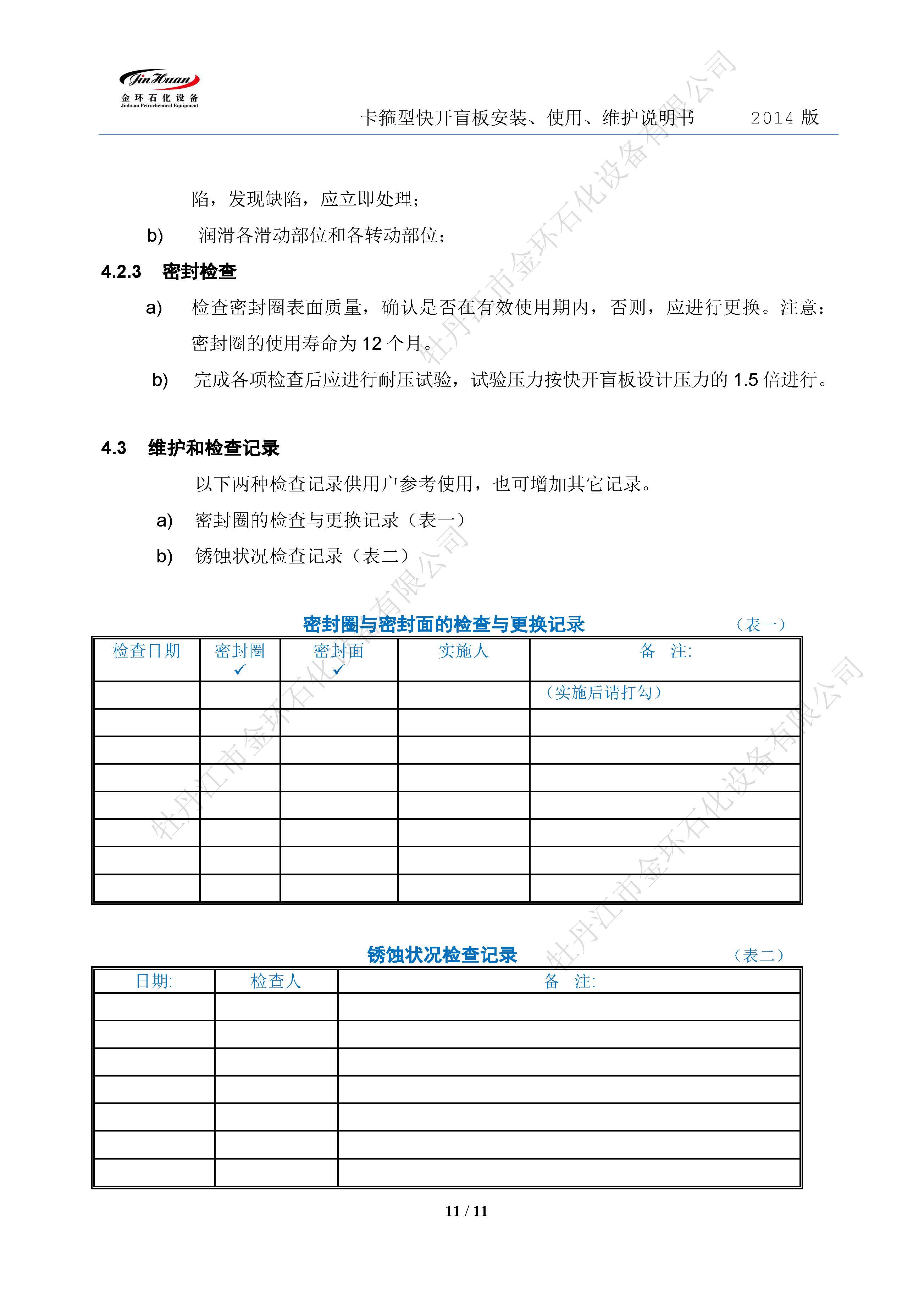 快开盲板使用说明书-牡丹江市金环石化设备有限公司