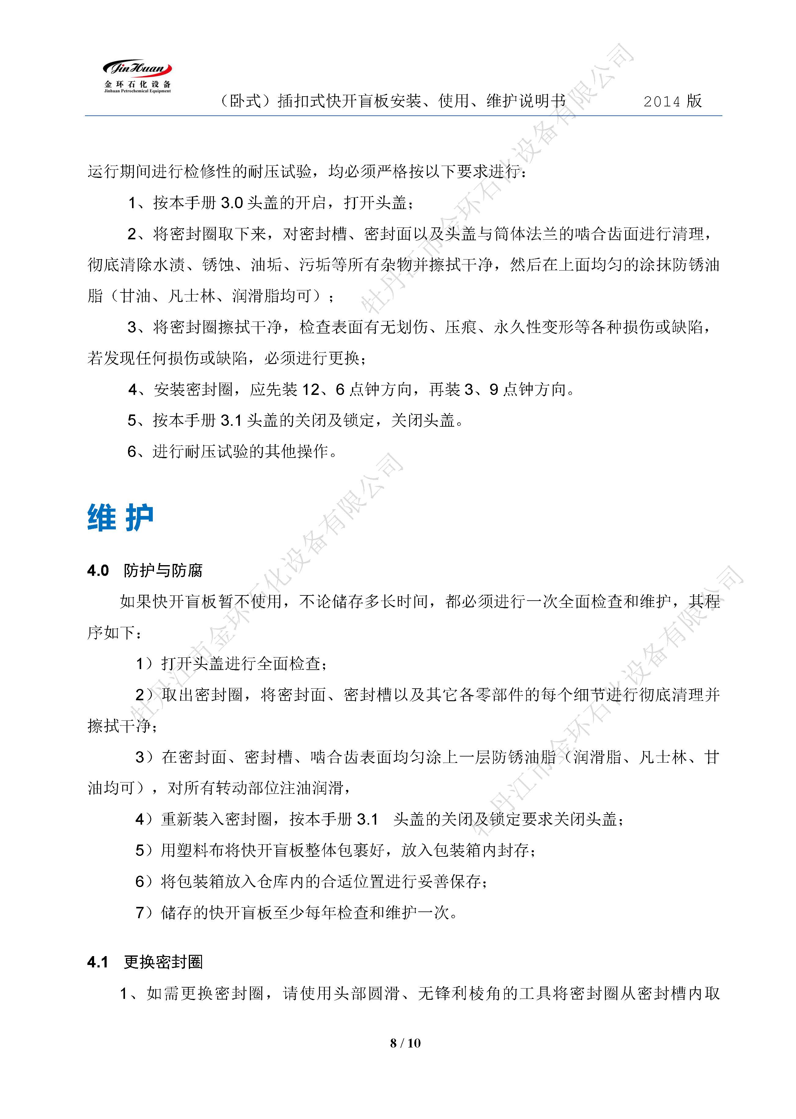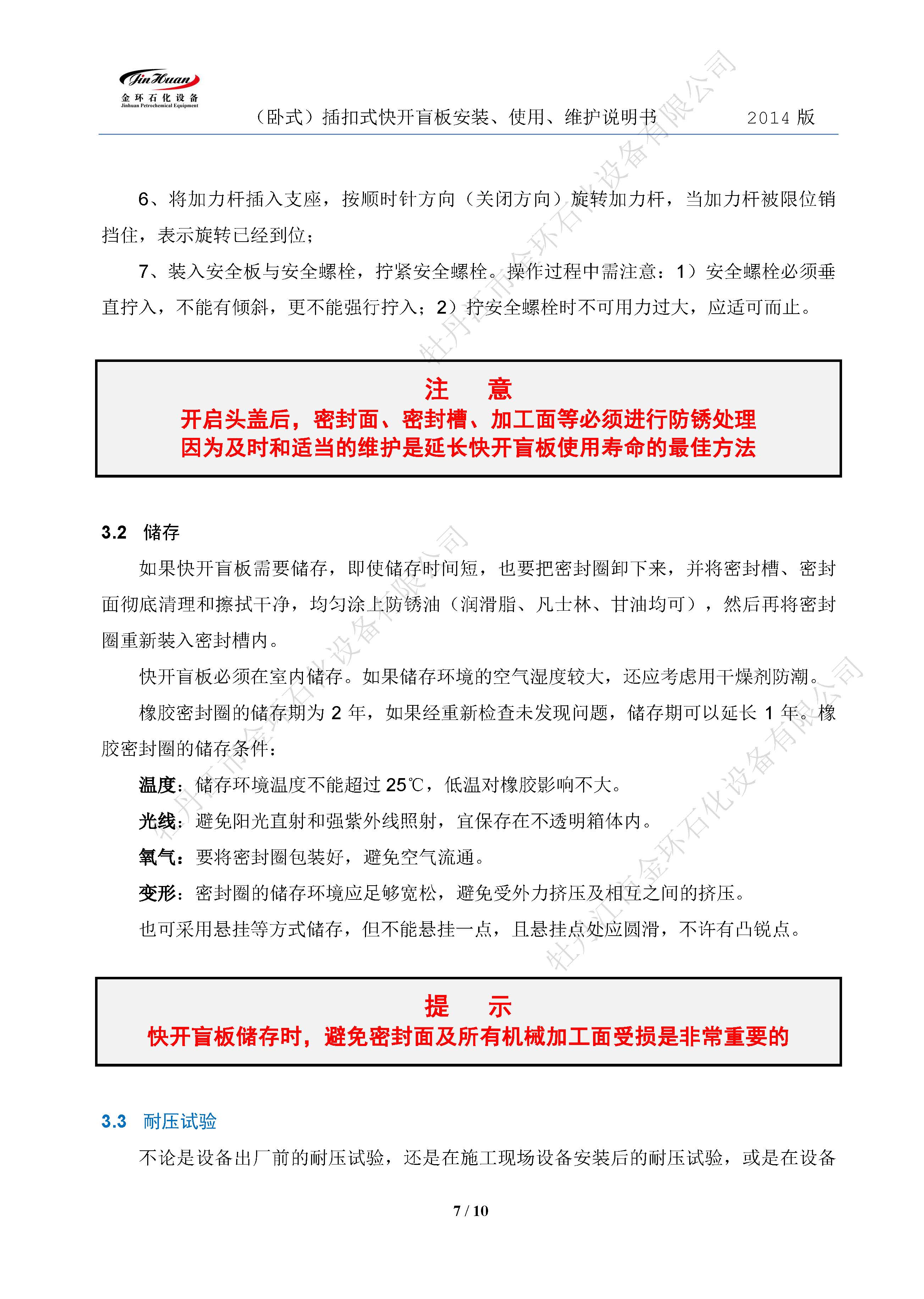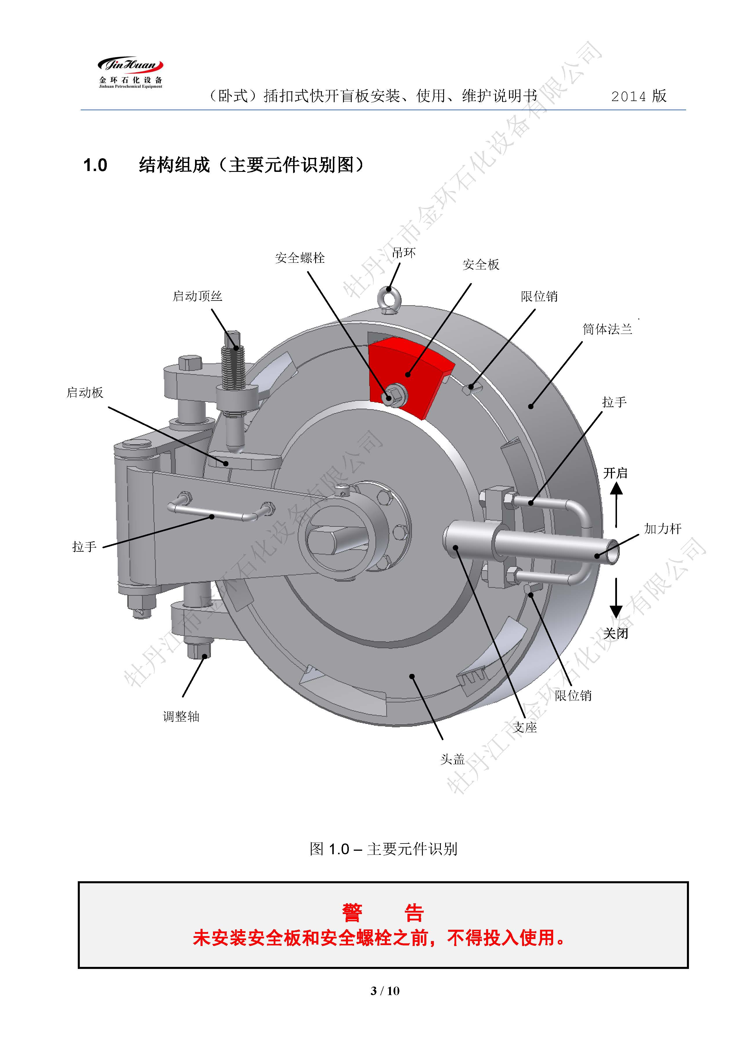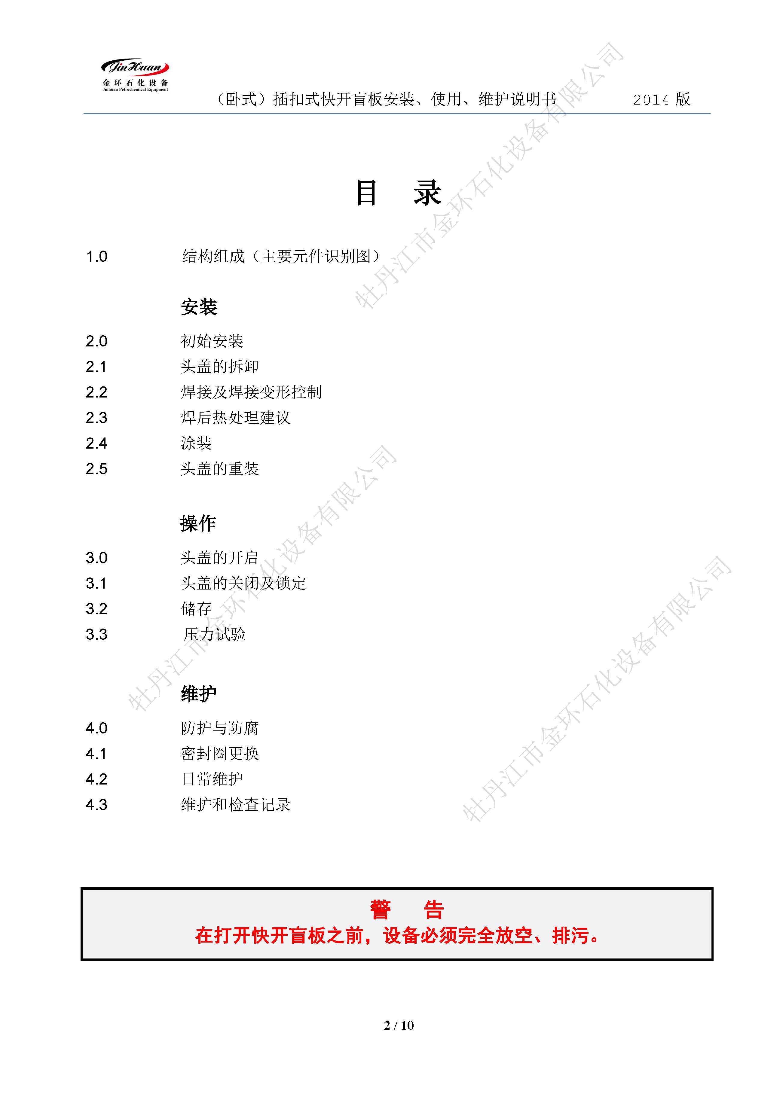 快开盲板使用说明书-牡丹江市金环石化设备有限公司