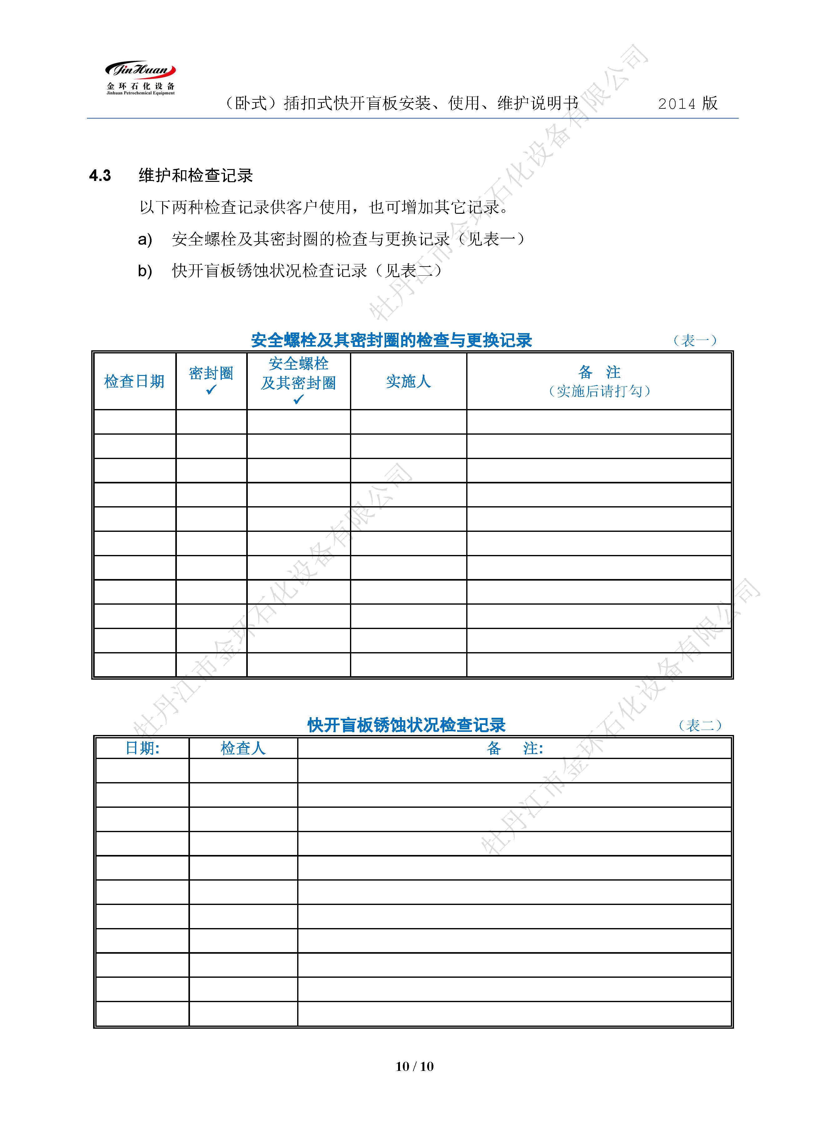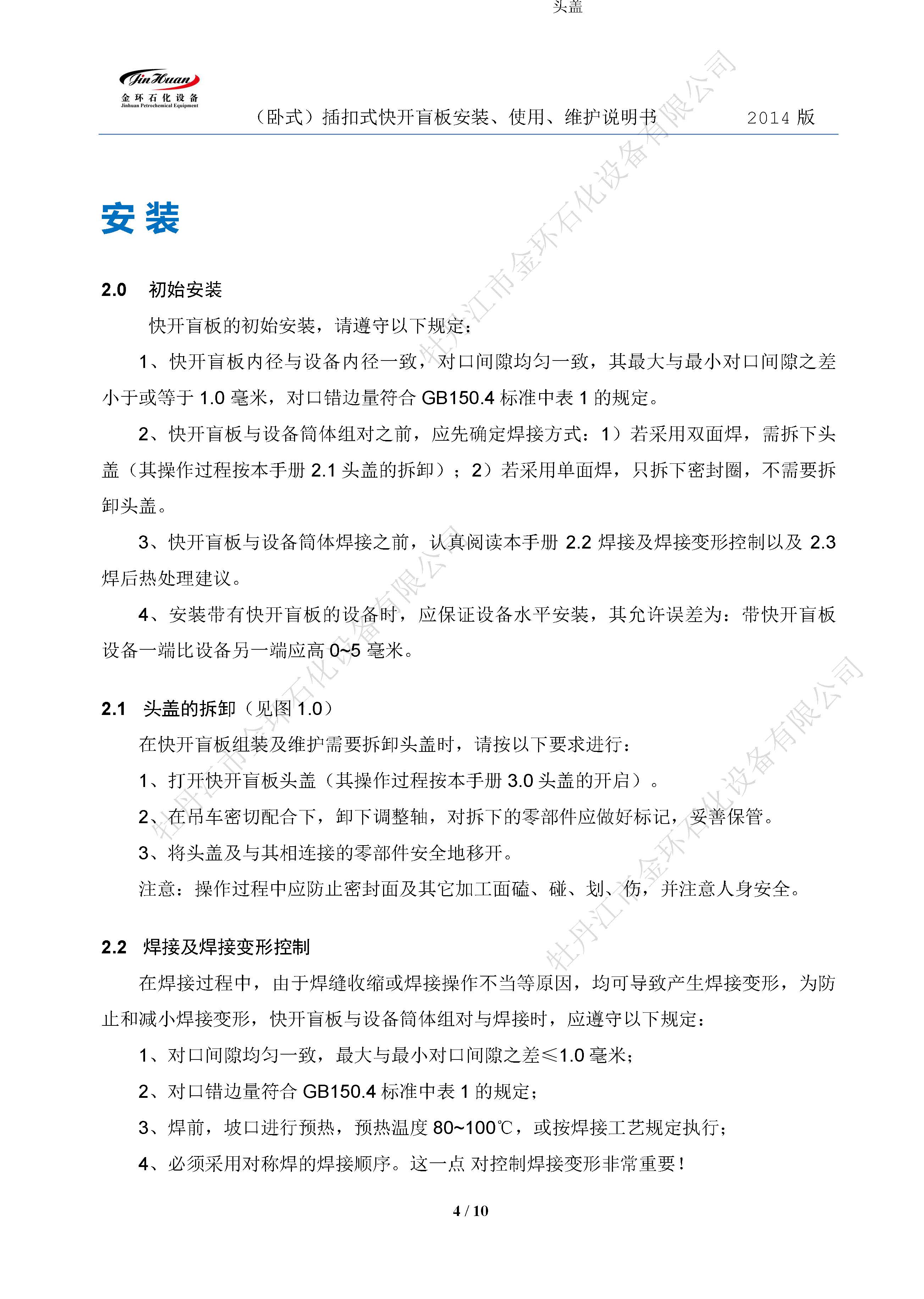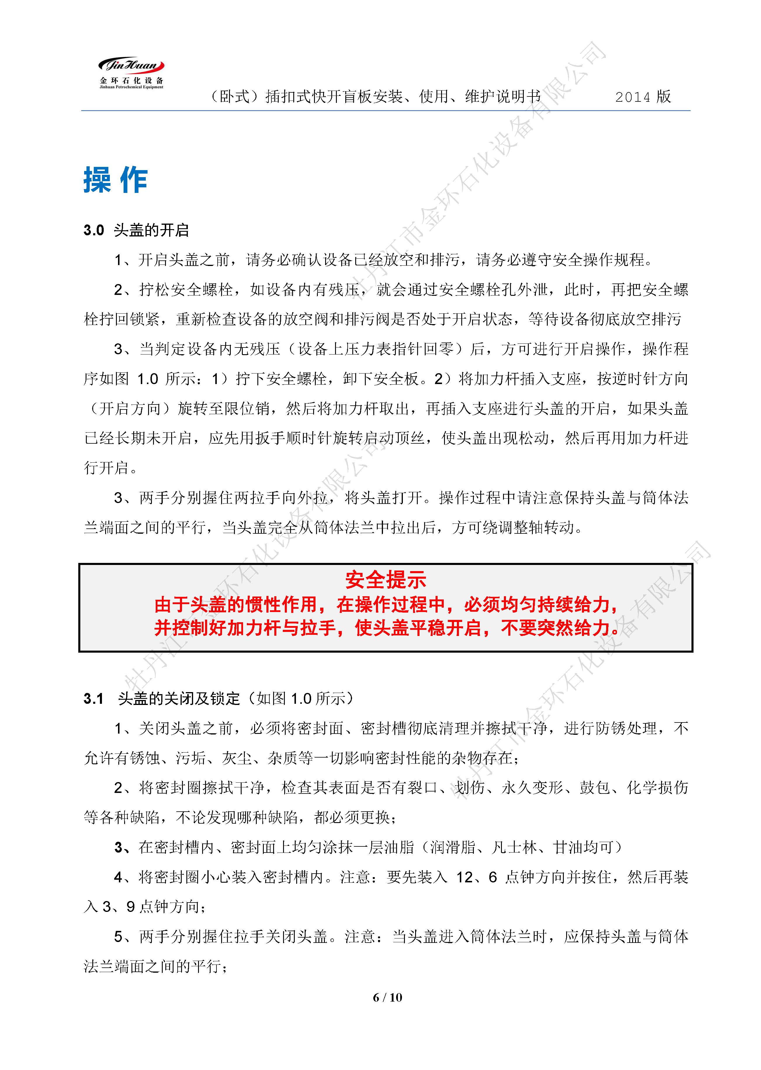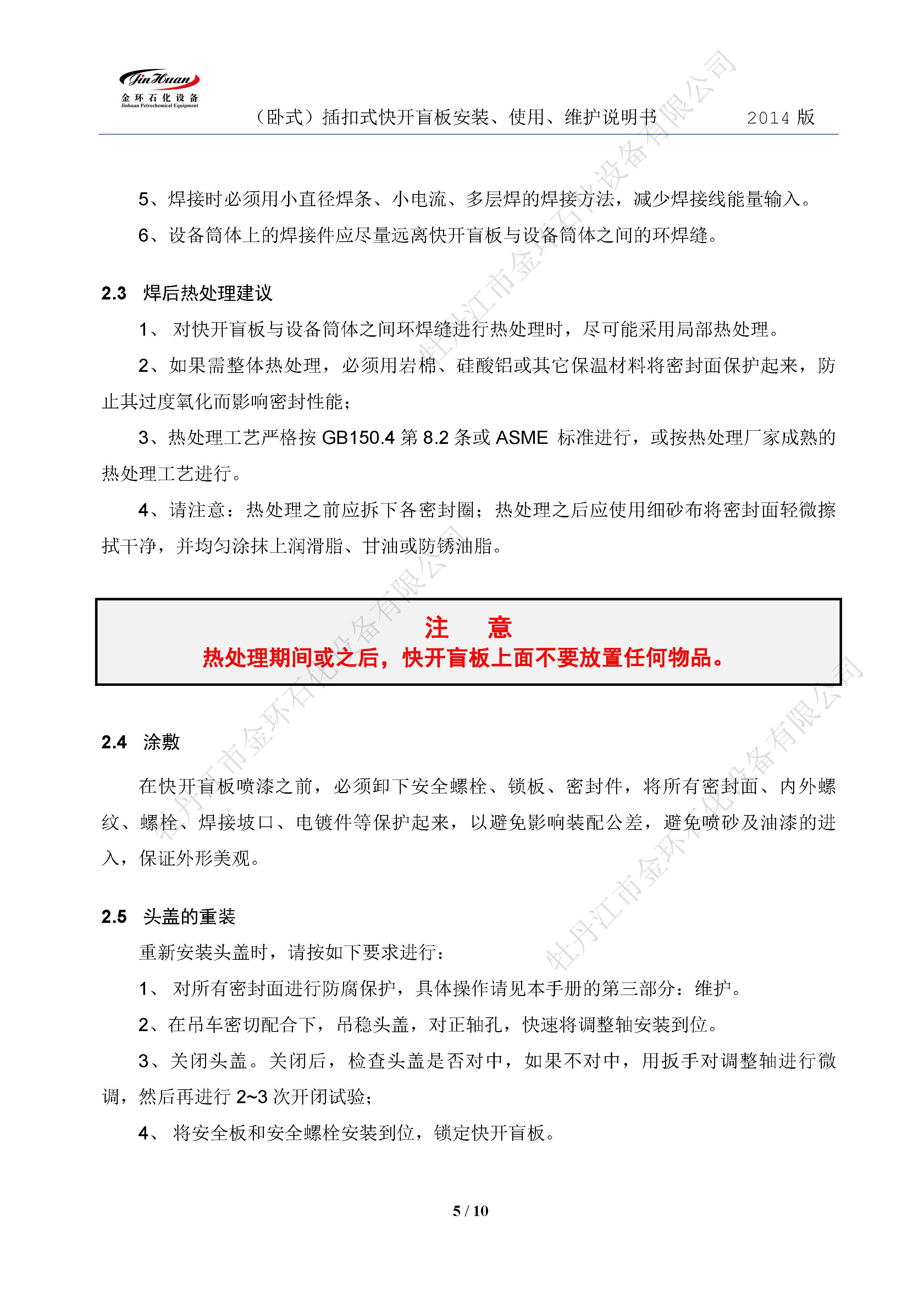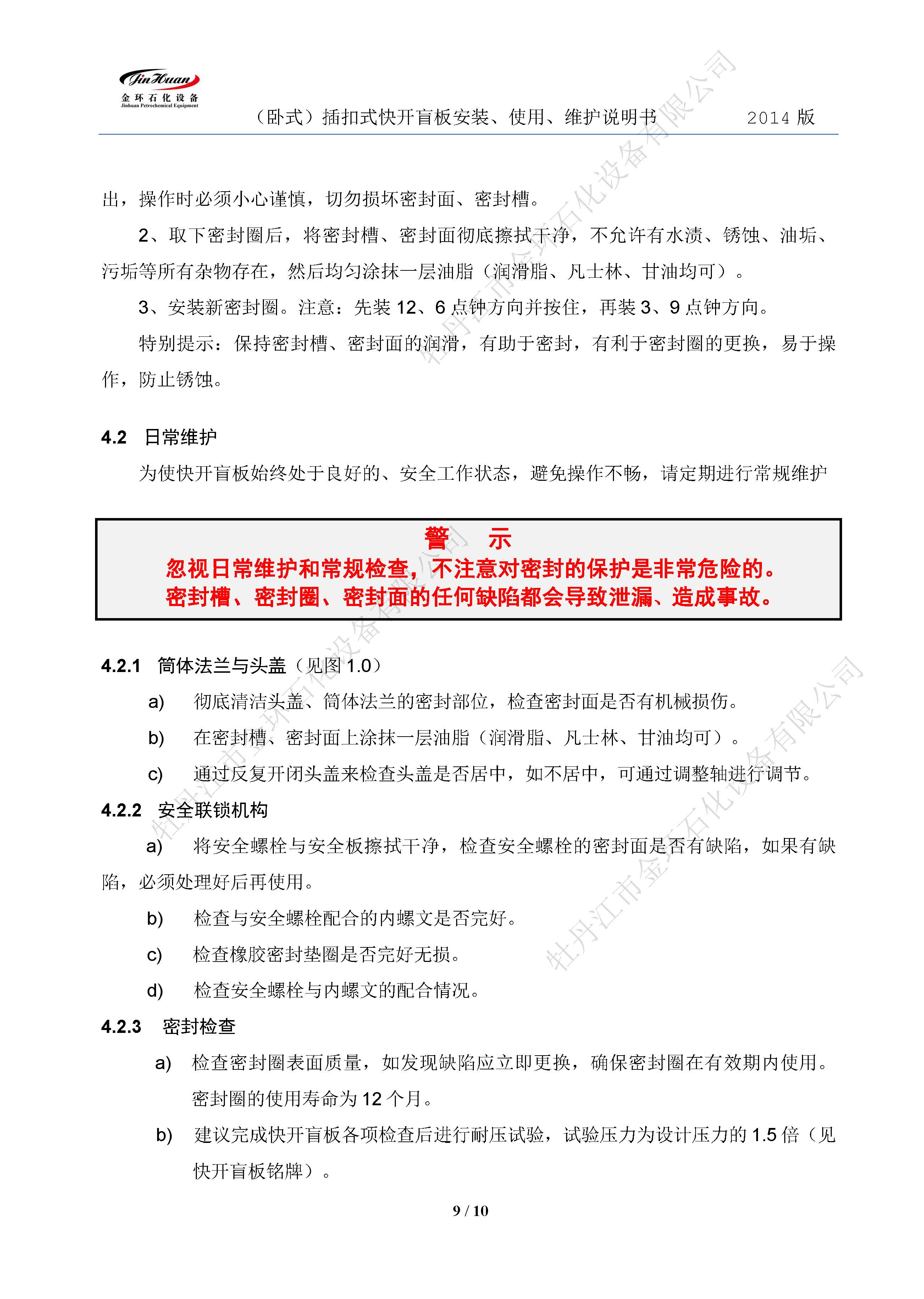 快开盲板使用说明书-牡丹江市金环石化设备有限公司