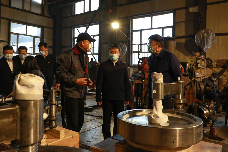 在牡丹江市金环石化设备有限公司,高忠远同志深入生产车间检查安全生产、隐患排查、疫情防控等措施落实情况,向企业员工宣讲省十三次党代会精神,并认真听取企业历史沿革、生产经营、经济效益等情况介绍,了解企业发展面临的问题和困难,对企业安置残疾人就业给予充分肯定和高度赞誉。他指出,金环石化是由国有企业转制而来的股份制民营企业,是目前国内唯一一家专门生产快开盲板的厂家,产品销售全国各省、市、自治区以及各大油田,并远销东南亚、中东地区,是我市优秀民营企业的代表和典范。他强调,推动牡丹江全面振兴全方位振兴,工业要率先振兴。企业要在学习贯彻省十三次党代会精神上下真功夫、实功夫,按照省党代会关于“八个振兴”,特别是产业振兴和 “换道超车”部署要求,抢抓新一轮科技革命和产业变革机遇,勇于创新、敢于突破,切实把省党代会精神转化为指导生产、推动企业发展的强大动力。要全面落实安全生产主体责任,牢固树立红线意识、底线思维,建立健全全员安全生产责任制,进一步筑牢安全防线。他要求,辖区党委政府特别是相关部门要以“能力作风建设年”活动为契机,针对企业发展痛点难点,不断深化纾困解难措施,用心用情用力当好企业发展服务员。属地公安机关要充分发挥职能作用,依法严厉打击妨碍企业生产经营违法犯罪活动,常态开展安全生产、疫情防控工作督导指导,全力保障企业合法权益和安全生产。