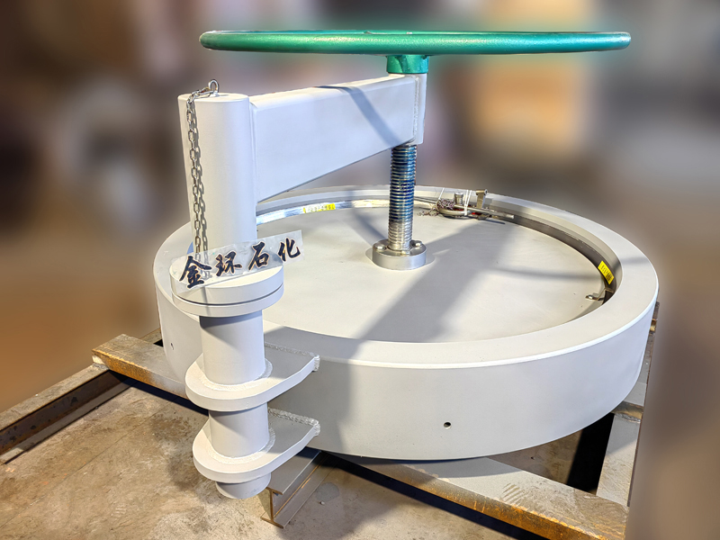 快开盲板是用于压力管道或压力容器的圆形开口上的一种机械装置。一般由筒体法兰、头盖、勾圈或卡箍、密封圈、安全联锁机构、开闭机构、转臂及短节(需要时)等部件构成。